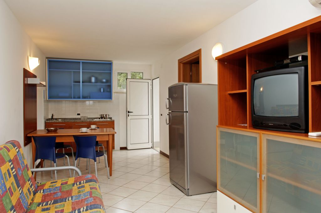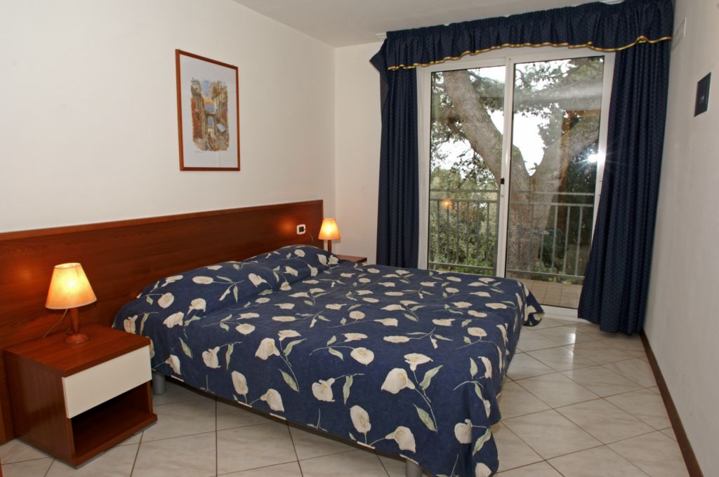 - TYPE E: Two-room apartment: 30-40 m2 , terrace, up to 4 persons, on the ground or 1st floor, consisting of a living room with sofa bed for 2 persons, 1 double room, kitchenette, bathroom with hairdryer. Air-condition. Some apartments have a sea view.
